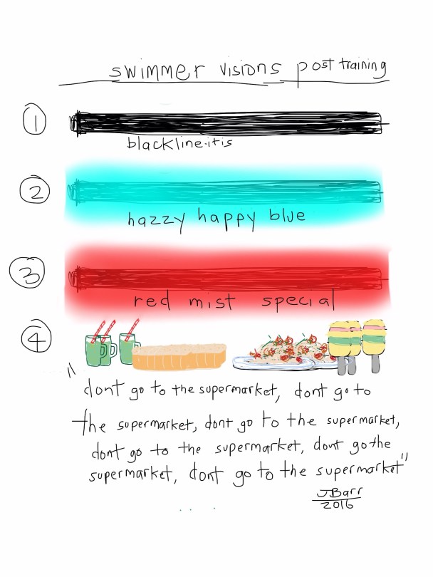swimmer vision problems came about after attempting a few red mist specials of 10x 300m on a decreasing beeper settings. and I’m always amazed at how I want every food group at once with complete disregard for the ‘normal’ patterns of consumption after swims like that.