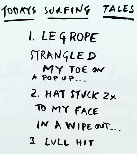 Add in that it takes a long time to surf- find a spot, park, check it out, get suited up, catch a couple of waves and thats a good two hours probably, any more waves just add more time, then hopping out, getting a coffee and a post surf chat and there goes the morning.