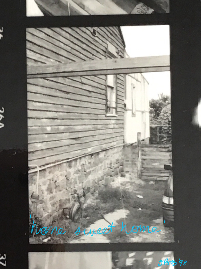 When I enrolled at the National Art School in 1998 I lost my beloved job at the Maritime Museum almost immediately because I was only a casual and the art course was full time, like 9 to 5 every day! In financial desperation I decided to sell my soul in the Commonwealth Bank at the beginning of Oxford street, along with the junkies and drag queens, early one morning, by signing up to a student loan so I could eat and pay rent. Which turned out to allow me to pay rent but not eat… So my flat mate and I sought cheaper digs, we moved from Newtown to Leichhardt. She found this house marked for demolition and we moved in taking two rooms each. I wrote this piece about the shack and the Lino whilst living there….