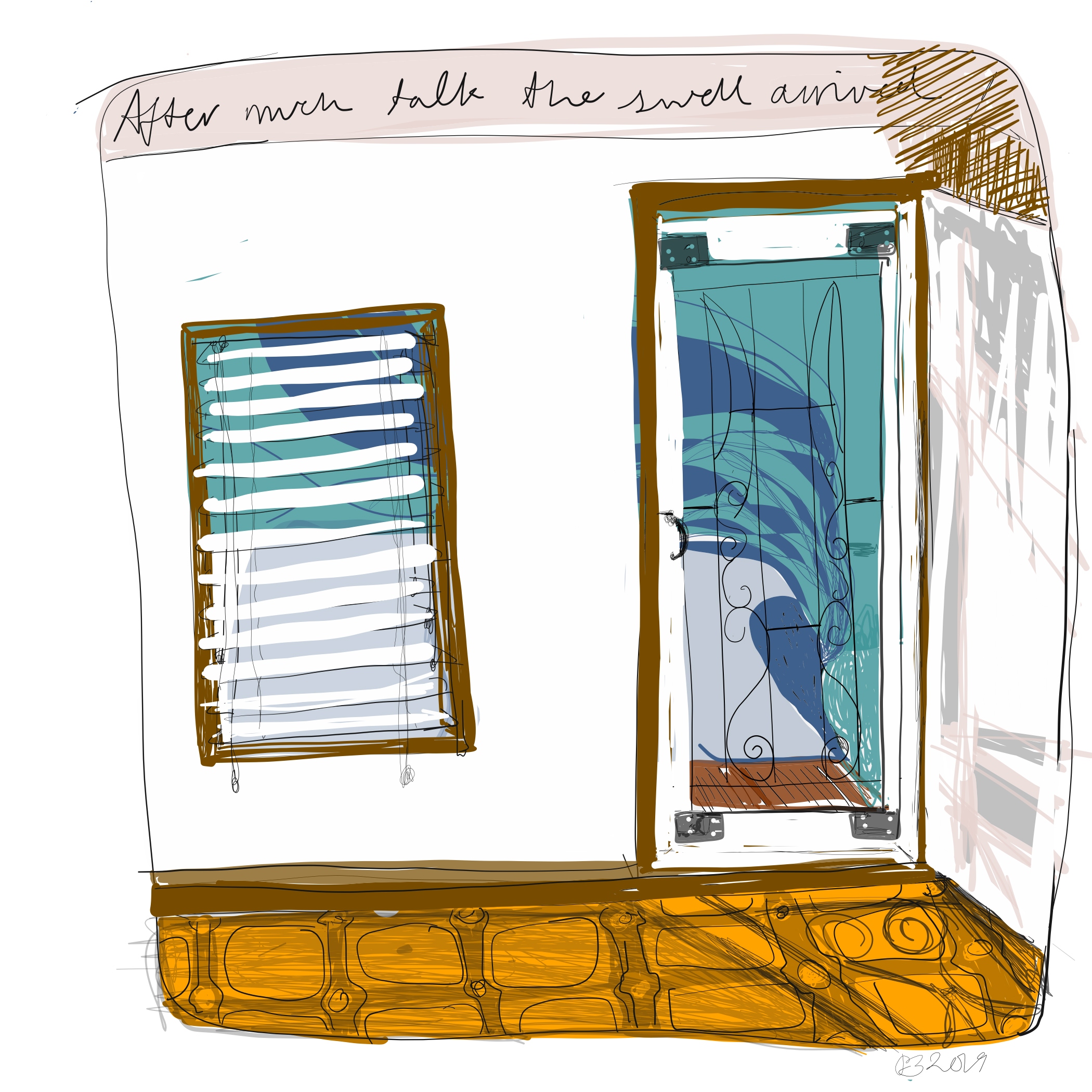 After much talk.jbarr2019 – Aftermuchtalkseries May 20, 2019 2100 × 2100 After Much Talk. A drawn story, set in a small seaside hamlet, where tea is taken with the weather. By Jenny Barr 2019 After Much talk the swell arrived. Digital Drawing Jenny Barr 2019 Share here Click to email a link to a friend (Opens in new window) Email Like Loading...